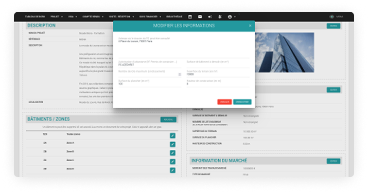 Lors de la création d’un projet, des étapes par défaut sont proposées, mais l’administrateur peut modifier, ajouter ou compléter ces éléments à tout moment. Ce suivi rigoureux facilite la coordination et l’anticipation des échéances.